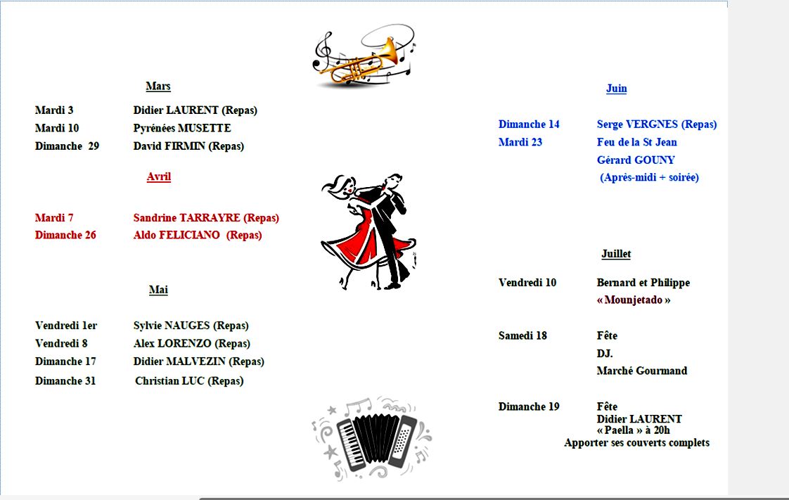 Tout au long de l’année, de nombreux bénévoles s’activent au sein des différentes associations (Comité des fêtes, football, gymnastique, pêche, chasse, pétanque, etc.). Grâce à cela, le village bénéficie d’un rayonnement qui sort parfois de notre département.