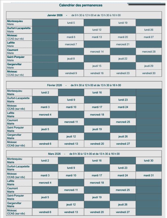 NOUVEAU PLANNING DES PERMANENCES JANVIER à MARS 2026